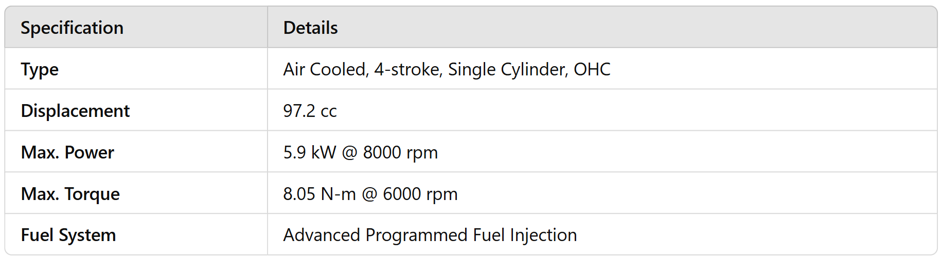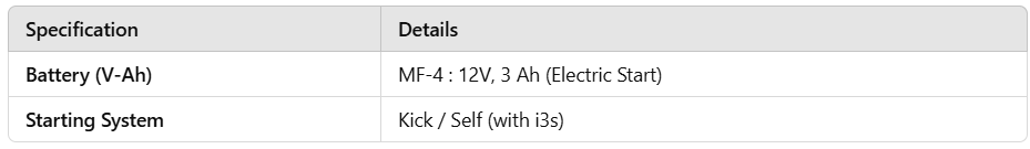 | Tyre Size & Type (Rear) | 90/100-10 53J, Tubeless |