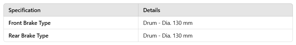 | Brake Type & Size (Rear) | Drum-130 mm |