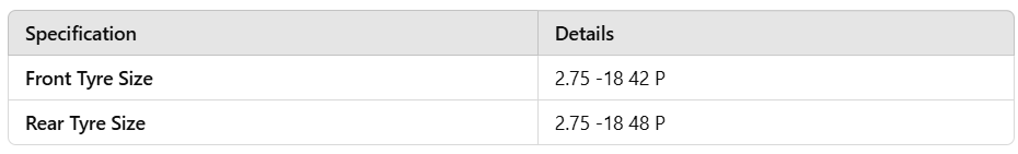 | Tyre Size & Type (Front) | 90/90-12 54J, Tubeless |