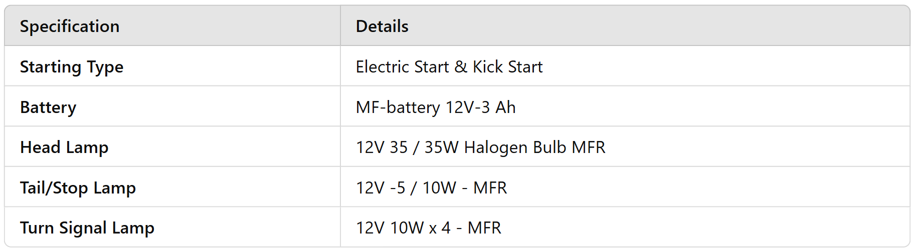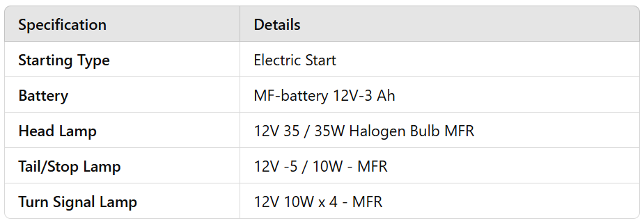 Brake Type & Size (Front)Disc-190 mm